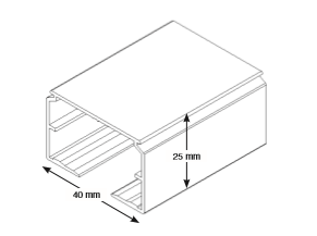 | Oberschiene | aus stranggepresstem Aluminium, weiß oder silber 40 mm Breite, 25 mm Höhe |