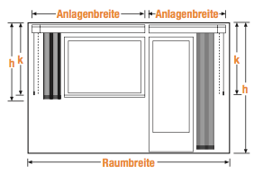 Anlagenbreite = Raumbreite - 10mm (mind.)
