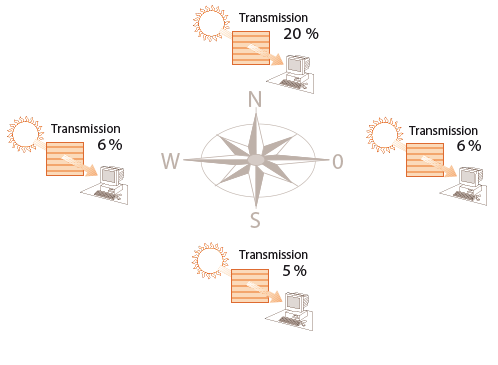 Die drei Werte zu Transmission, Absorption und Transmission ergeben zusammen 100%.