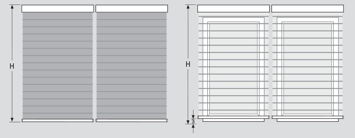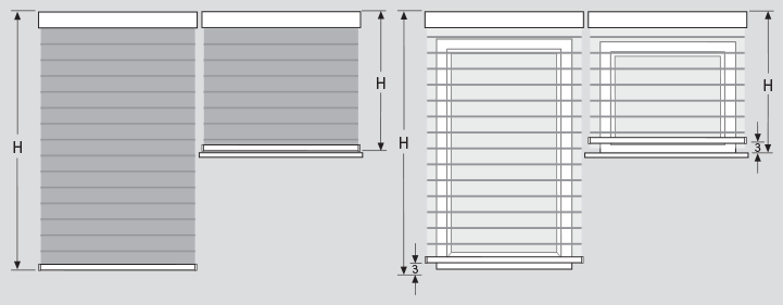 Die Position der Unterleiste ist abhängig von der Behanglänge und wird unterschiedlich im Behang positioniert.